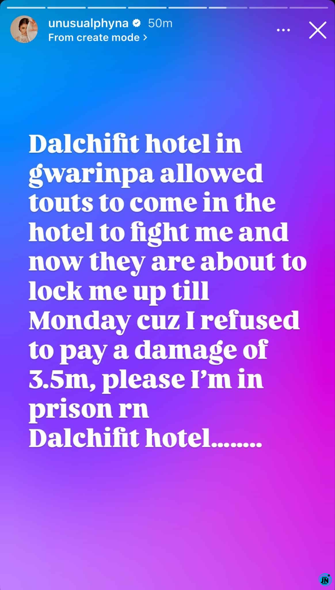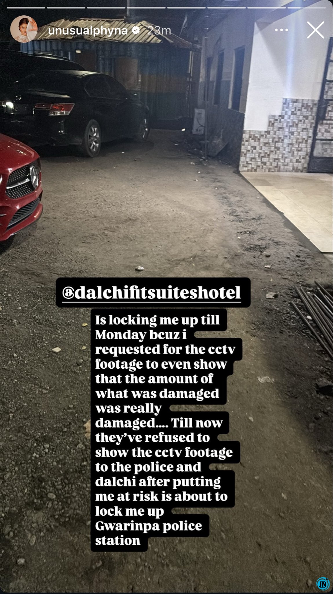 She continued, “Omo, this 2025 for just take me leave my sister. Dalchifit Hotel in Swarinpa allowed touts to come into the hotel to fight me and now they are about to lock me up till Monday cuz I refused to pay a damage of ₦3.5 million. Please, I’m in prison rn. Dalchifit Hotel…….”