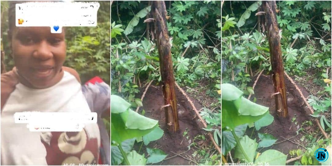 In a viral TikTok video posted by @mrsmajesty01, the young mother captured the exact spot in her compound where the plantain tree was planted using the umbilical cord of her infant son. She narrated how her mother-in-law insisted on performing the act, explaining that it was part of a traditional belief meant to bless the child and bring fruitfulness to the household.