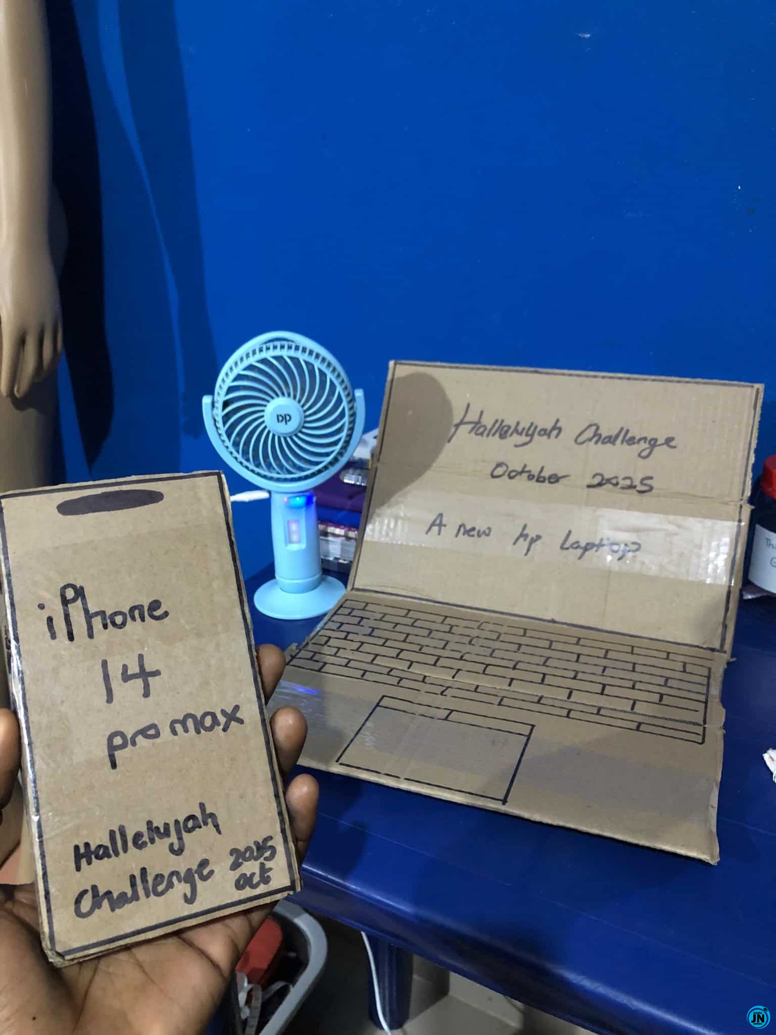 A young Nigerian lady has become the center of attention on social media after her act of faith during the ongoing 2025 Hallelujah Challenge led to an outpouring of unexpected blessings. The lady, who initially showcased her creativity by sketching a laptop and an iPhone 14 Pro Max on a piece of carton paper, has now received both items in real life — a brand-new HP laptop and ₦100,000 in cash.