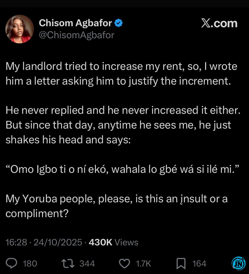 The lawyer, identified on X (formerly Twitter) as @ChisomAgbafor, explained that her landlord unexpectedly informed her about a rent increase. The decision came without any form of written notice, valid reason, or explanation, which caught her off guard. Instead of reacting impulsively or emotionally, she decided to approach the matter professionally, leveraging her legal background to challenge the move logically.