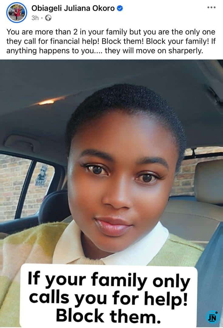In her viral post, Obiageli addressed a situation many people — especially those living abroad — quietly endure: being used as a financial lifeline by family who rarely call unless there is a monetary request involved.