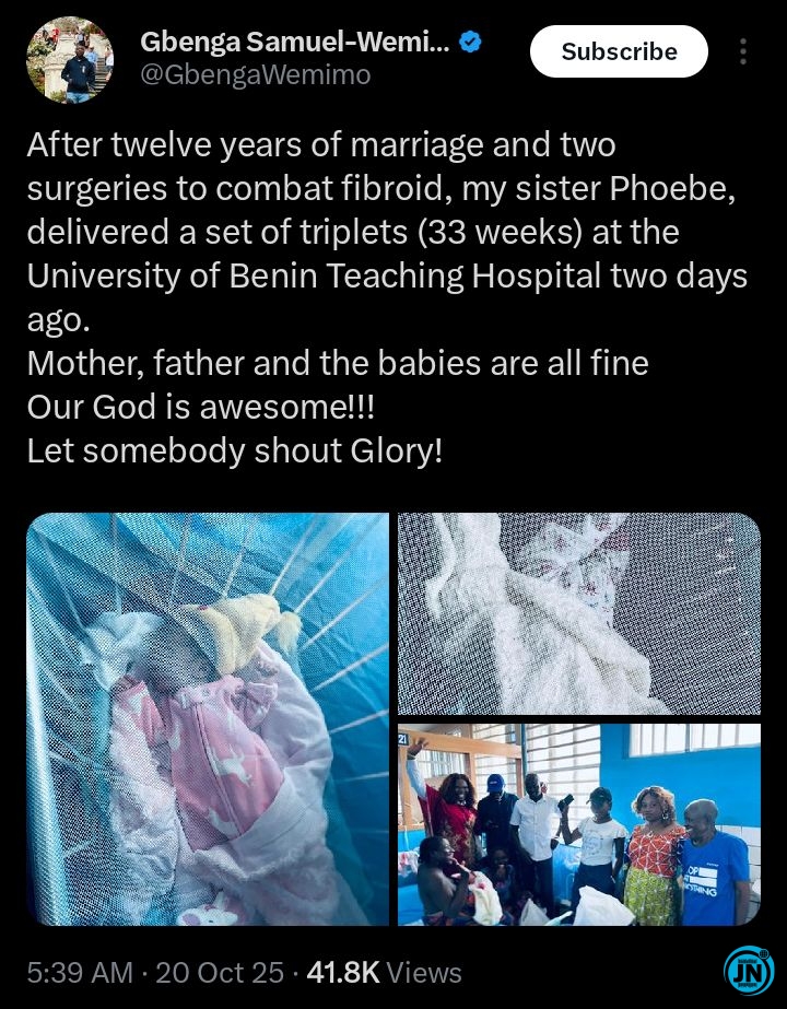 As photos and videos of the new mother holding her babies continue to circulate online, her story has touched countless hearts across Nigeria and beyond. The post has since gone viral, with many describing it as “a triple blessing after years of trials,” a true testament to hope, perseverance, and the power of faith.